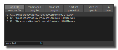 Typically, the file list can be a set a audio files to create a sound bank and connect the comma-text output to a list comma text of a sampler module.