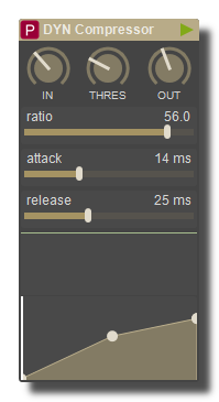 Sets the amount of process.In a normal use, if the Ratio is 3:1, signals 6db above the threshold will come out 2db over the threshold.
