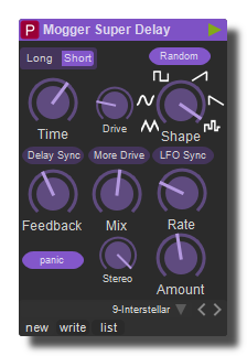 Powerful delay audio effect with multi wave form LFO for modulation.