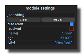 When ON, new incoming JSON strings are parsed and new outlets are created if new fields are received. When OFF no new outlets are created.